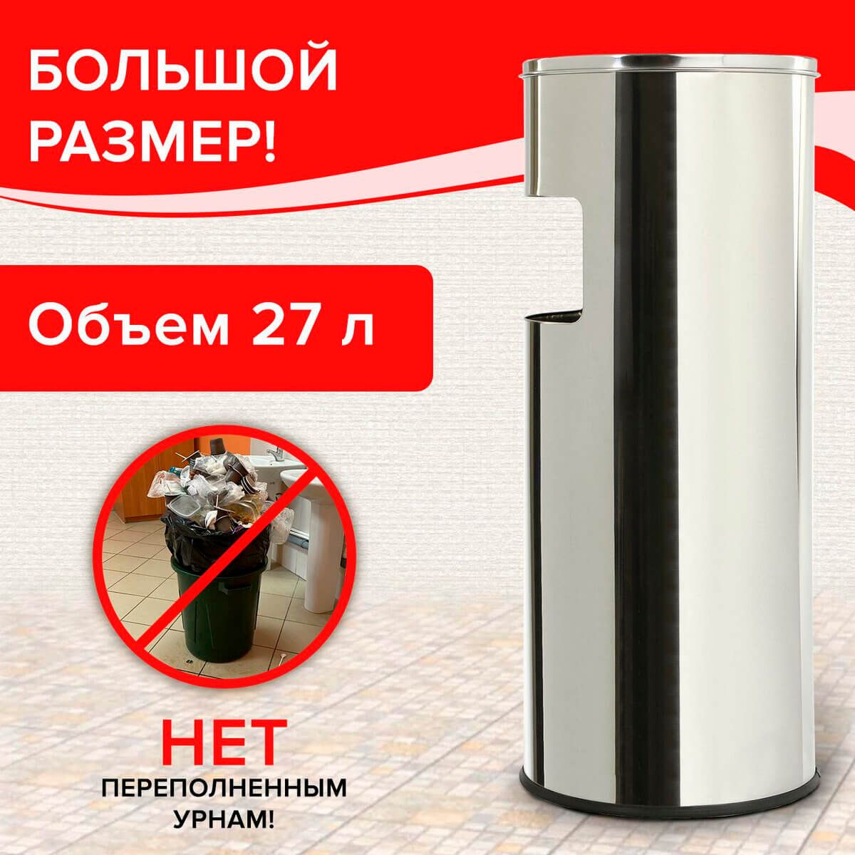 Урна с пепельницей 27 л, нержавеющая сталь, зеркальная, LAIMA PROFESSIONAL в Челябинске